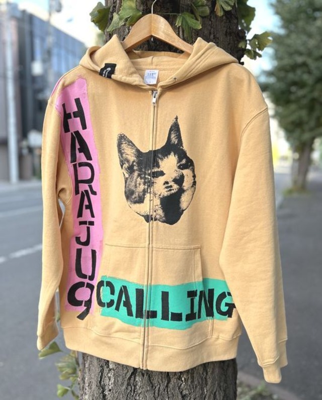 ポシェットと原宿が大好きな猫の9ちゃんのポシェット専門店『TE9NO HARAJUKU』のオリジナルウェアです。ラフォーレ原宿から竹下通りでクレープを。 "MADE in HAND PRINT" ※一点ずつ手刷りのシルクスクリーンにつき、パッションによるほとばしり、エモーショナルなかすれがあります。 ※サイズは画像をご参照下さいませ。 ※裏パイル、二重フード、10oz