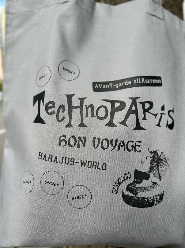 『テクノパリスアヴァンギャルドシルクスクリーン バッジ5箇所つけるところ専用ゾーンありますバッグ』が出来ました!バッジは5個セットでバッグとセット販売しております。より一層完成度も胸の鼓動も高まります。いつか原宿の竹下通りかキャットストリートにお店が出来ても良いように、『原宿-世界』というワードを先取りして刷りました。そして、9ちゃんはいつだって楽しいことはないかなと、葉っぱの影からじっとりこちらを見ているのです。(見つめていたい=THE PORICE)ここは猫背に沿って(見つめる)『キャッツアイ』(緑色に光る)と文字入れしました。そして!なんと親切なことでしょう。バッジをつけるのにいつもバランスで難儀されることありませんか?迷わないように丸で5箇所バッジのパーソナルスペースをご用意致しております。どうぞこのバッグ持って『良い旅』に出掛けて下さいね。