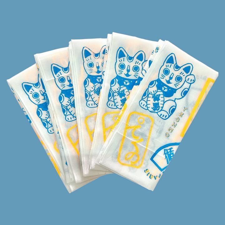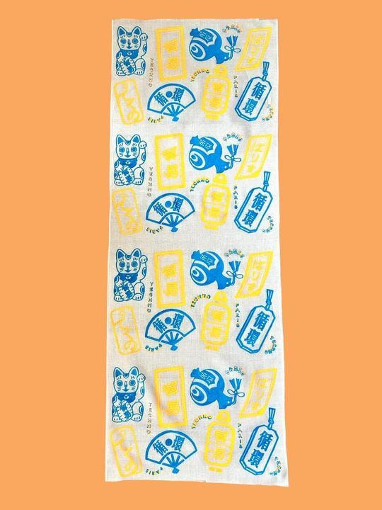 テクノパリス貿易オリジナル日本手ぬぐいが仕上がりました。イラストを描いてレイアウトし、シルクスクリーンでは8回刷り合わせて、ようやく一枚の手ぬぐいが出来ました。手間暇かけて、丁寧な作業の繰り返しを大切にしています。