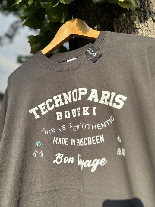 イラストやコラージュのシルクスクリーン作品が賑やかにパレードしてきましたが、2025秋冬の立ち上がりはしっかりとしたオーセンティックで始めます。肩や胸に小さく「福」の文字を入れ、着る人の毎日に小さな幸運をもたらされるよう願ったロンTです。テクノパリス貿易の監督さん、三毛猫9ちゃんの「九」と大好きな思い出の街「原宿」など、所縁ある大切な言葉も図案の構成と致しました。また沢山の方に愛されるよう、歴史あるオーセンティックなアメリカのアポロシアターやパリのクレイジーホースのお土産屋さんを参考にし、ワクワクしながら制作致しました。作業しやすい袖のリブはジャケットやアウターを着用される際に腕通りがスムーズです。首元に付けた織りタグまでもがオール手刷りのシルクスクリーンです。