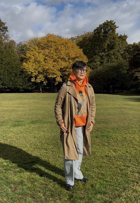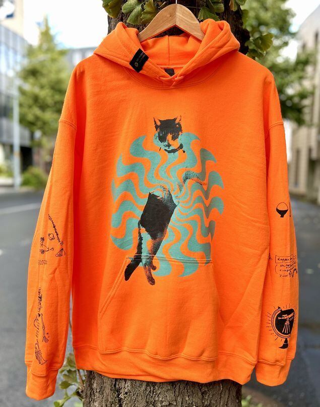 フロントの大判プリントと袖にも図案が入る特別なスペシャルエディション。UZUMAKU中に浮かび上がるは、四次元からこちらを見ている9ちゃん!袖には過去作デザインの宝物たちから抜粋配列。茶碗飯とパンはこの世界でやっていきたいという強い意志が伺えます(ゆるい絵だが)。フードが下りるその時には『Bon voyage! /良い旅を!』と一声かけそっと背中を押します。コラージュな雰囲気を楽しんで制作致しました。